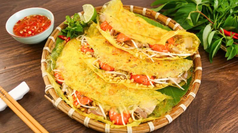 Hôm ấy, tôi về Cần Thơ vào buổi trưa đầy nắng. Sau một chuyến chèo xuồng len lỏi qua những con rạch xanh rì, tôi được dẫn đến một căn bếp mái lá nằm ven sông. Người chủ – một cô bác miền Tây phúc hậu – đang đứng bên chiếc chảo gang đen bóng. Cô múc một vá bột gạo vàng, khéo léo nghiêng chảo cho bột loang đều, rồi rắc lên nhân tôm, thịt, giá, đậu xanh… Tiếng “xèo” vang lên, thơm lừng, quyện cùng mùi nước cốt dừa béo ngậy.